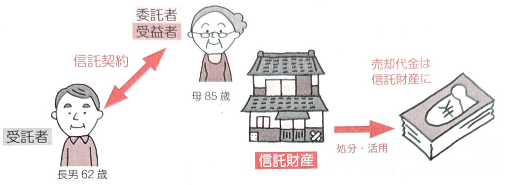 信託契約により、成年後見制度などを使わないと自宅は処分・活用などが難しかったのが、息子の判断で自由に処分・活用できるようになります。