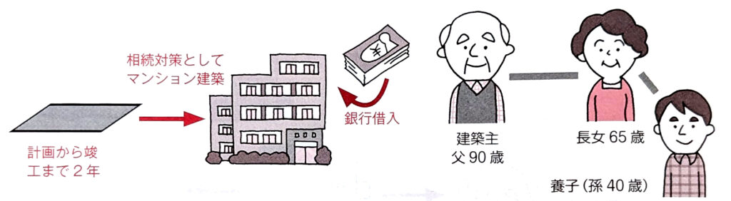 土地所有者である父親は90歳で、子どもは長女1人、そして長女の子である孫が1人います。その孫は父親の養子に入っており、そのため、実質的な相続人は2人です。